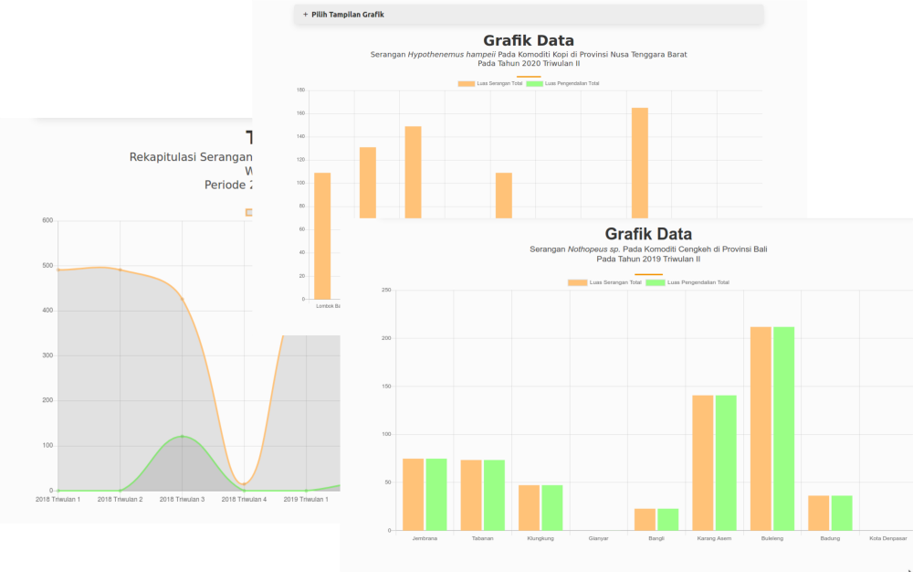 Tersedia beragam penyajian, standar, timeseries, prediksi. Dalam Tabel, Grafik, dan Peta interaktif.
